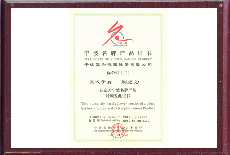 寧波名牌產(chǎn)品證書(shū)