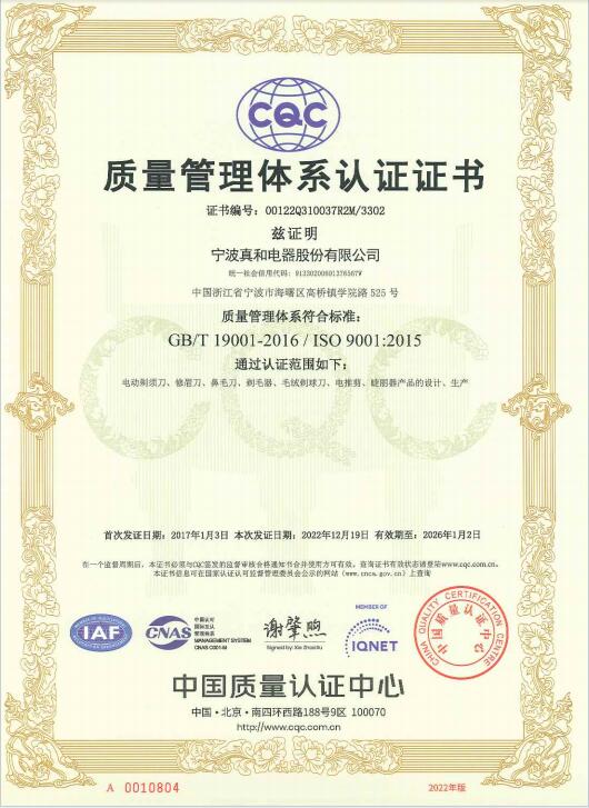 質(zhì)量管理體系證書(shū)