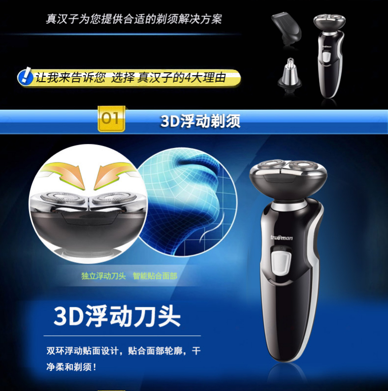 雙頭浮動式剃須刀-寧波真和電器股份有限公司,研發(fā)、制造、銷售各類電動剃須刀、電推剪、毛絨刀、電吹風、美容器具等